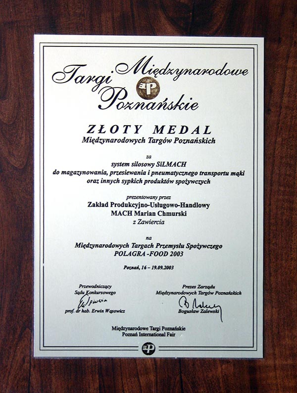 System Silosowy SILMACH otrzymał ponadto wyróżnienie w kategorii